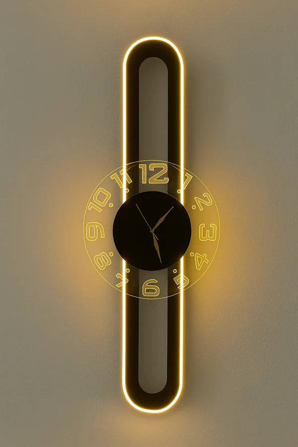 AuraClock 2-in-1 vertical and Horizontal clock Home and Office Wall with neon light ambiance