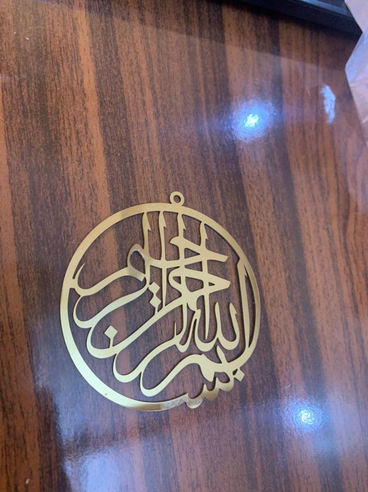 car hanging circle design Gold Plated & black powder coated Pendant laser cutting beautiful gift pack Islamic calligraphy product high-quality laser cutting in Lahore Pakistan