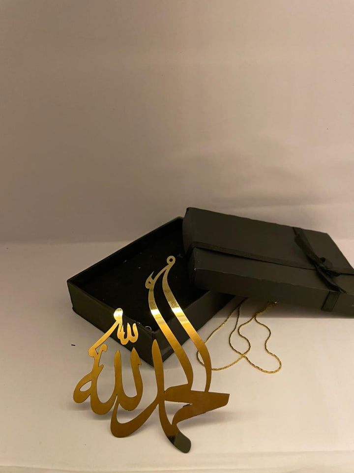 Gold Plated  coated Pendant laser cutting beautiful gift pack Islamic calligraphy product high-quality laser cutting in Karaci Pakistan Laser cutting Gift pack for family and friends. creative Gift of Gold Plated Pendant laser cutting, Creative Islamic Calligraphy with state of the art Laser Cutting in KARACHI PAKISTAN SIZE: 3 TO 3.5 INCH APPROXIMATELY THICKNESS: 0.8 MM