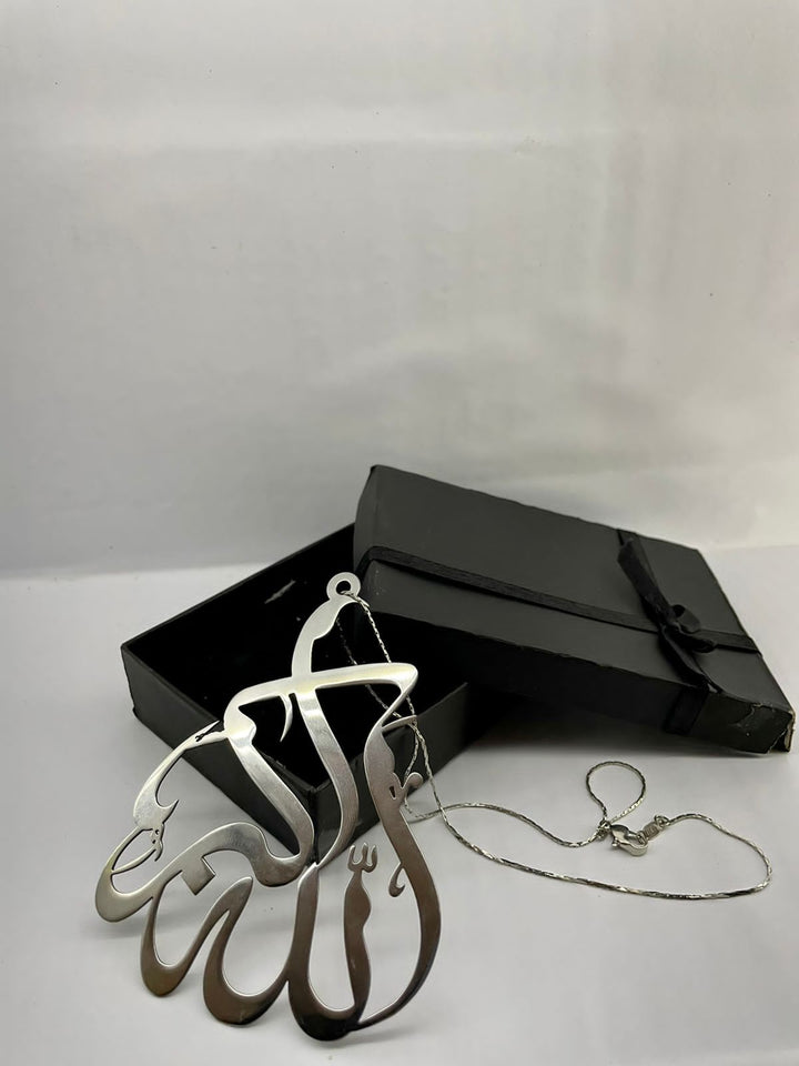SILVER Pendant laser cutting beautiful gift pack Islamic calligraphy product high-quality laser cutting in Karaci Pakistan Laser cutting Gift pack for family and friends. creative Gift of Gold Plated Pendant laser cutting, Creative Islamic Calligraphy with state of the art Laser Cutting in KARACHI PAKISTAN SIZE: 3 TO 3.5 INCH APPROXIMATELY THICKNESS: 0.8 MM