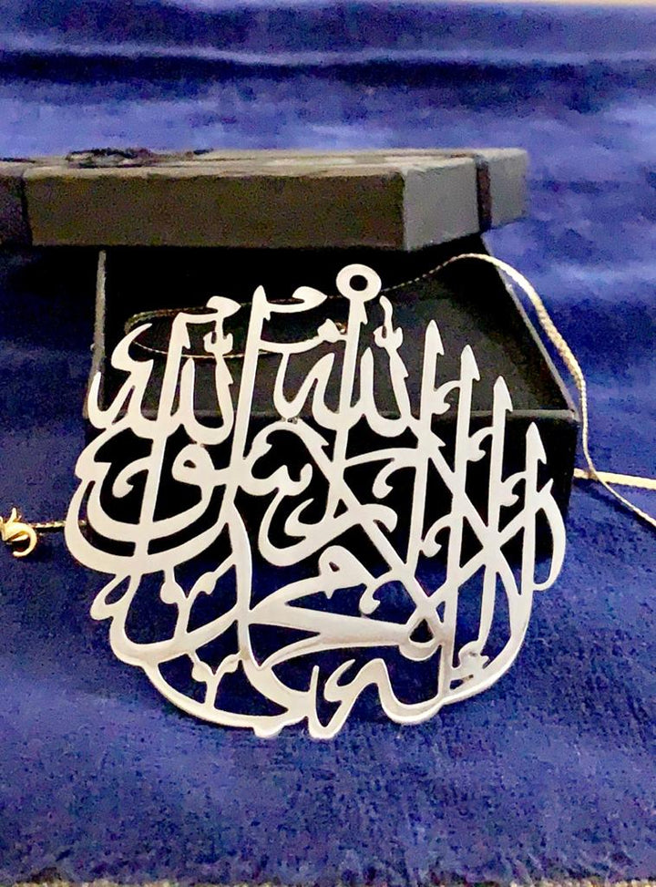 SILVER STAINLESS STEEL Plated laser cutting beautiful gift pack Islamic calligraphy product high-quality laser cutting in Karaci Pakistan Laser cutting Gift pack for family and friends. creative Gift of Gold Plated Pendant laser cutting, Creative Islamic Calligraphy with state of the art Laser Cutting in KARACHI PAKISTAN SIZE: 3 TO 3.5 INCH APPROXIMATELY THICKNESS: 0.8 MMHurry up! Sale Ends in