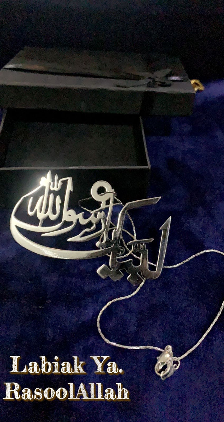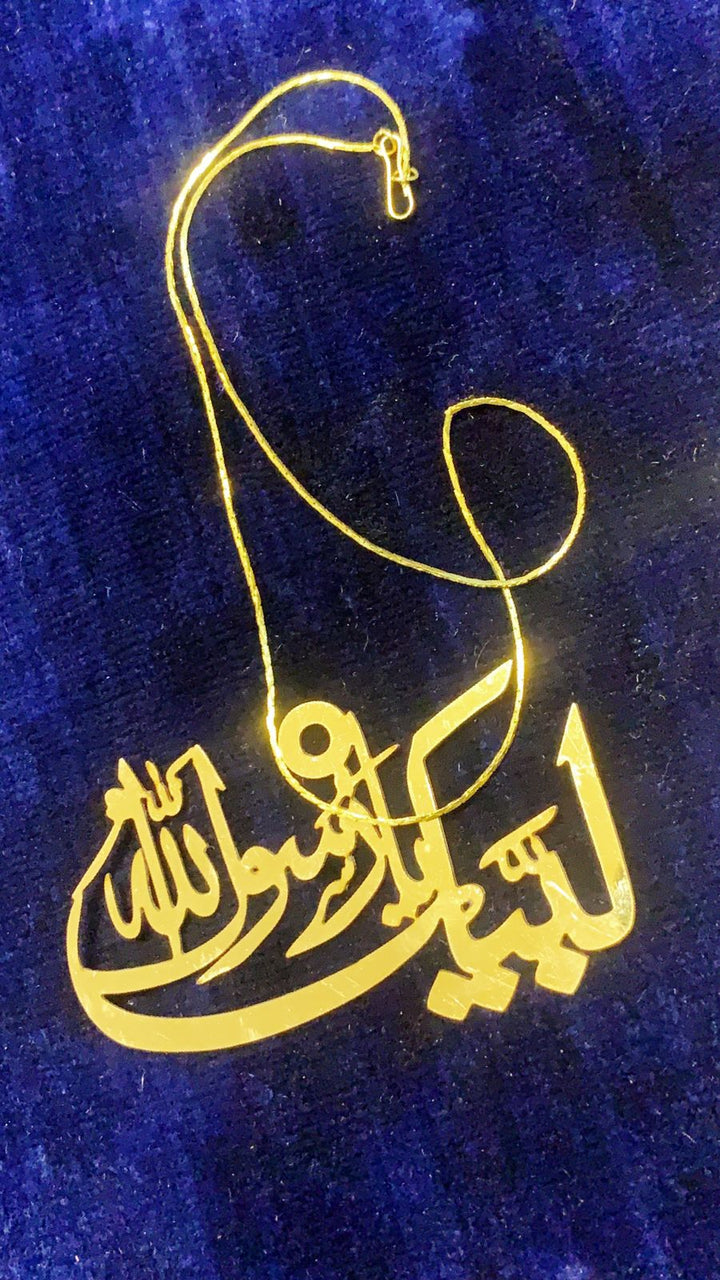 Gold Plated  coated Pendant laser cutting beautiful gift pack Islamic calligraphy product high-quality laser cutting in Karaci Pakistan Laser cutting Gift pack for family and friends. creative Gift of Gold Plated Pendant laser cutting, Creative Islamic Calligraphy with state of the art Laser Cutting in KARACHI PAKISTAN SIZE: 3 TO 3.5 INCH APPROXIMATELY THICKNESS: 0.8 MM