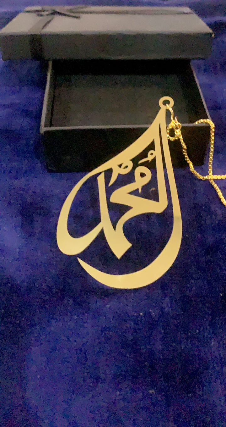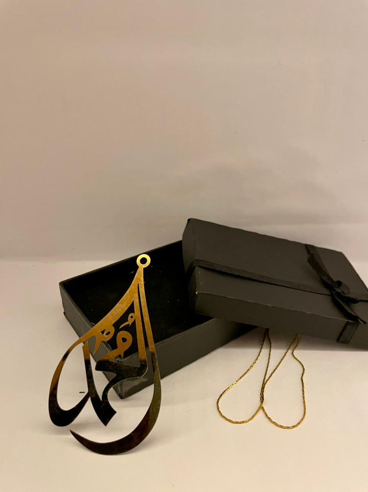 Gold Plated coated Pendant laser cutting beautiful gift pack Islamic calligraphy product high-quality laser cutting in Karaci Pakistan Laser cutting Gift pack for family and friends. creative Gift of Gold Plated Pendant laser cutting, Creative Islamic Calligraphy with state of the art Laser Cutting in KARACHI PAKISTAN SIZE: 3 TO 3.5 INCH APPROXIMATELY THICKNESS: 0.8 MM