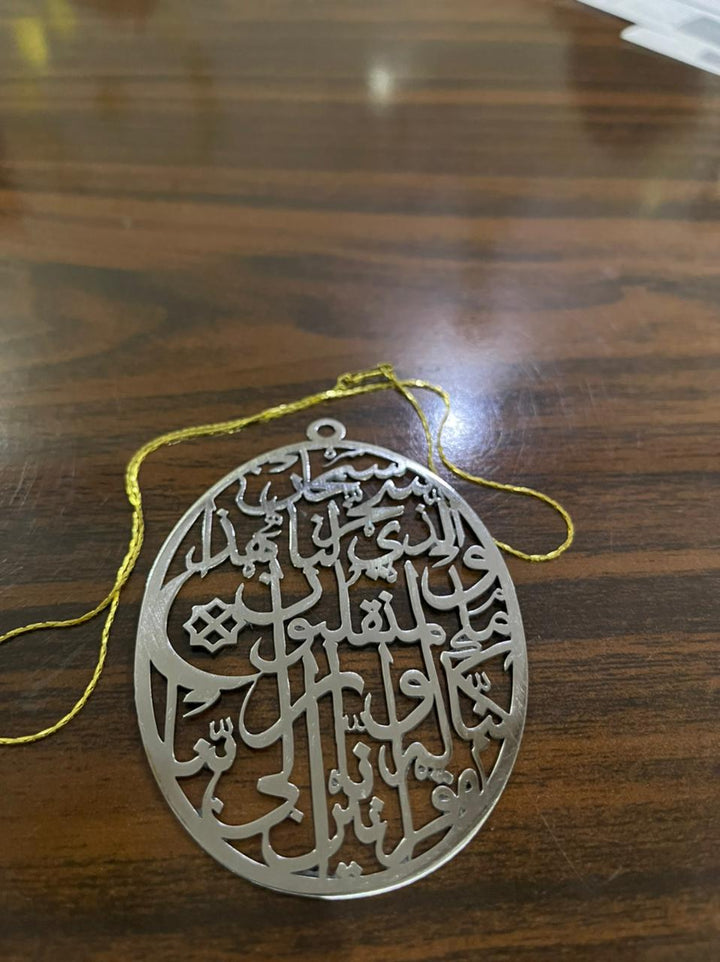car hanging circle design Pendant laser cutting beautiful gift pack Islamic calligraphy product high-quality laser cutting in Lahore Pakistan