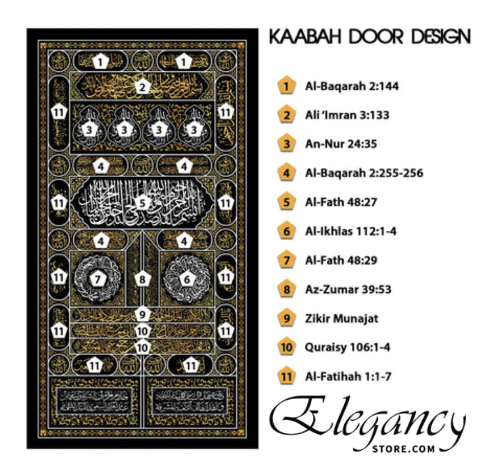 his beautiful Kaabah Door design is digitally drawn by our designers from scratch and carefully checked by two asatizah to ensure there is no mistake in the verses from our Holy Quran.