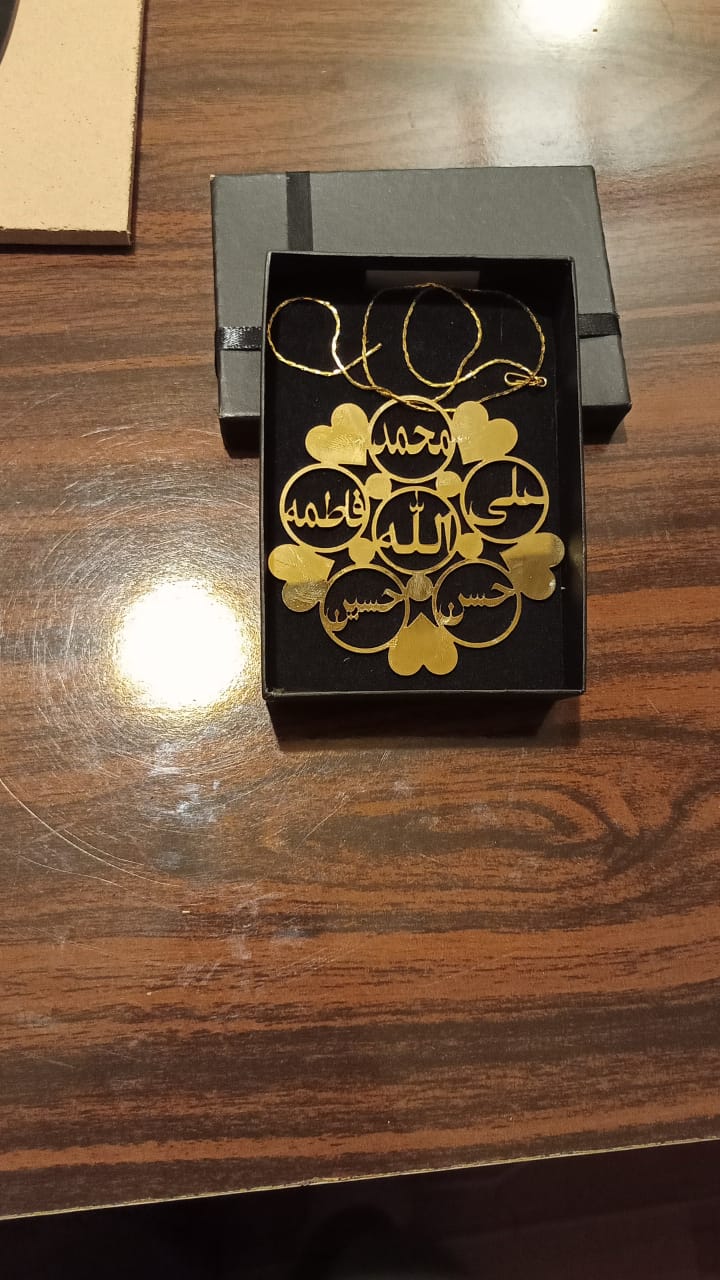 Laser cutting Gift pack for family and friends. creative Gift of Gold Plated Pendant laser cutting, Creative Islamic Calligraphy with state of the art Laser Cutting in KARACHI PAKISTAN