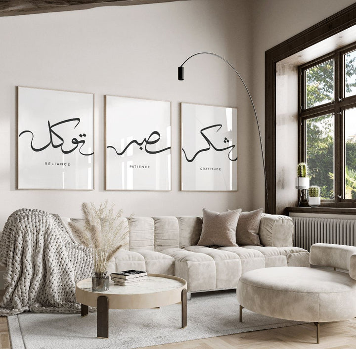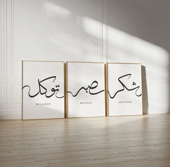 Sabr Shukr Tawakkul Wall Frame Set Arabic Calligraphy