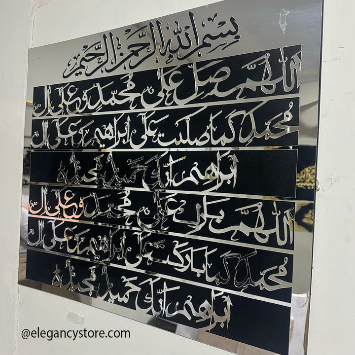 Square Shape Darood Sharif In Acrylic Silver Mirror