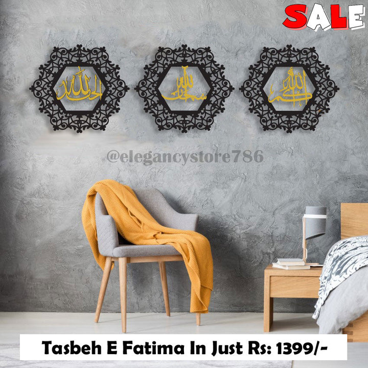 - Fine quality Deco Paint on Wooden Material is used inTasbeh E Fatima Floral which gives A Very Premium Look and gives Shinny and outer frames are wooden MDF